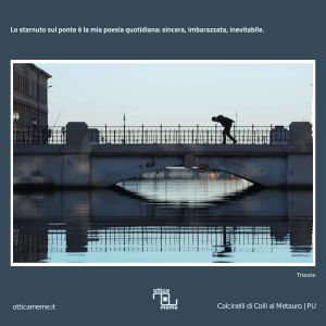 La fotografia scelta quest'anno è dedicata a Trieste e al suo spirito sincero e talvolta malinconico. L'immagine, che ritrae un signore colto in uno starnuto spontaneo su un ponte, è l'essenza della nostra ricerca: trovare il bello nell'imperfezione e nell'umanità, senza filtri.